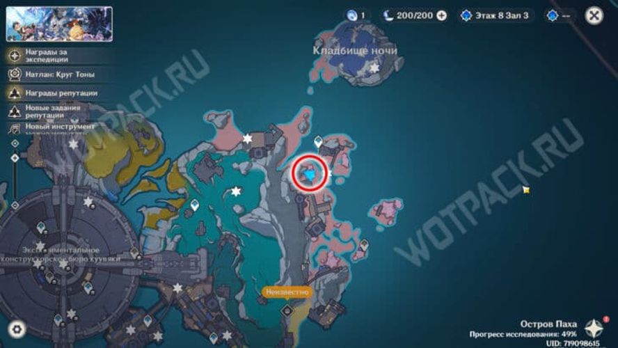 In einem schwer zugänglichen Gebiet auf der Insel Paha haben die Fatui ihre Truppen stationiert und kontrollieren mehrere ihrer Anlagen. Innerhalb dieser Gebäude lassen sich die meisten Mooncules-Fragmenten aufspüren, insgesamt sind es 25 Stück. Für einige dieser Fragmente ist jedoch eine spezielle Quest erforderlich, die den Titel „Der Schuhmacher hat keine Schuhe“ trägt.