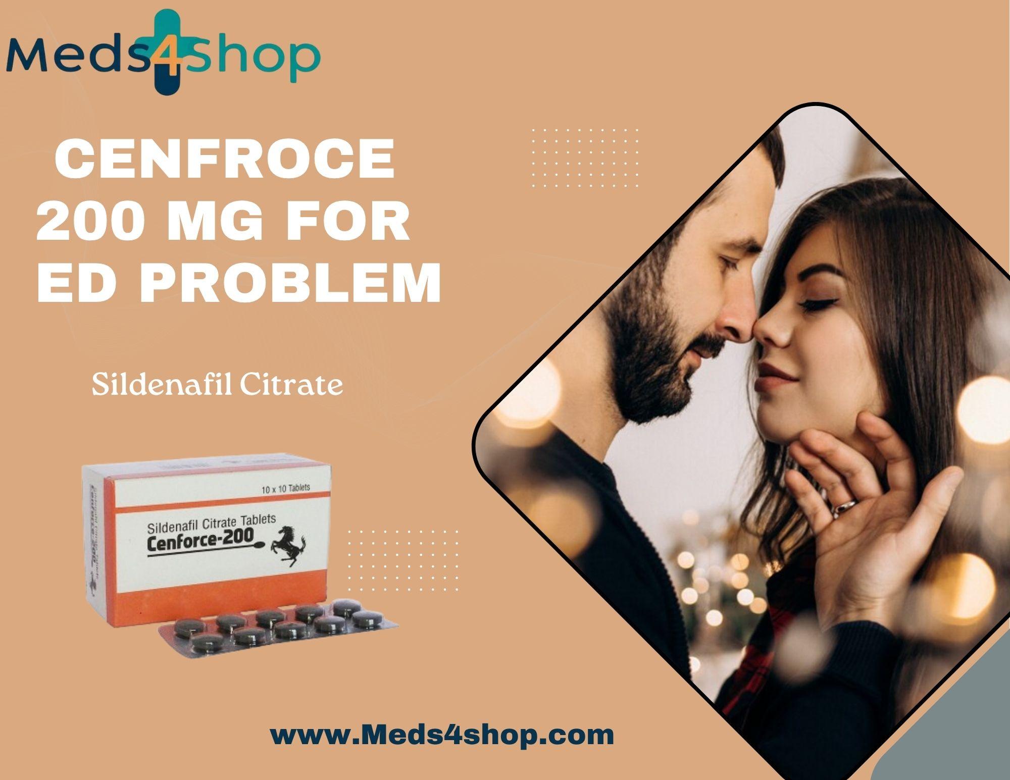 Cenforce 200 mg is a potent medicine used to treat erectile dysfunction (ED) in men. It contains Sildenafil Citrate, a PDE5 inhibitor that enhances blood flow to the penile region, helping men achieve and maintain a firm erection. This high-strength version is recommended for those who need a stronger dose for effective results. Take it 30–60 minutes before sexual activity, and avoid alcohol or fatty meals for best performance. Always consult your doctor before use to ensure safety. For genuine and affordable ED medicines, buy Cenforce 200 online from Meds4shop , your trusted source for quality healthcare.