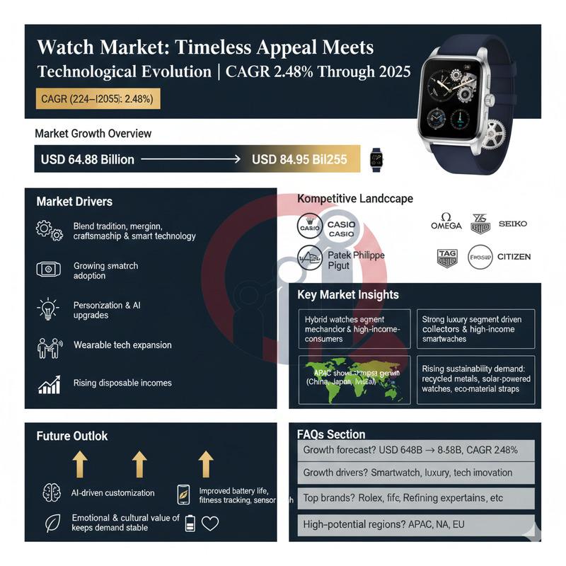 Growth in the global watch industry is shaped by evolving consumer lifestyles, technological progress, and increasing demand for premium personal accessories. Watches continue to hold cultural significance while adapting to modern functionality expectations, supporting sustained expansion across multiple segments.