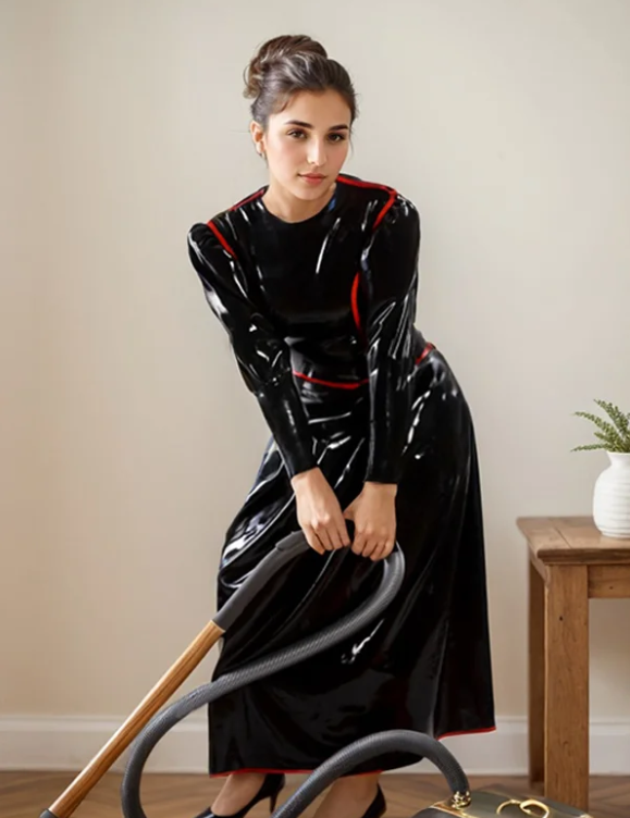 When worn to galas or formal celebrations, a maxi latex gown delivers undeniable impact. The sculptural effect of latex enhances posture and presence, while the deep black tone radiates mystery. This length proves that latex can be just as graceful as traditional evening fabrics, yet far more unforgettable.