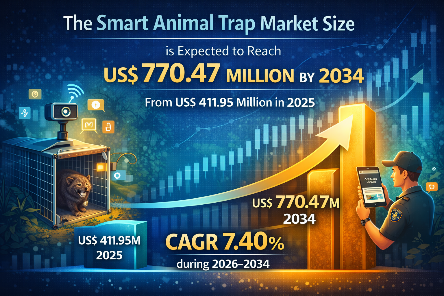 The Smart animal trap market is projected to grow significantly, reaching US$ 770.47 million by 2034 from US$ 411.95 million in 2025, registering a CAGR of 7.40% during the forecast period from 2026 to 2034. This steady growth reflects increasing demand for humane, efficient, and technology driven wildlife and pest control solutions. Smart animal traps integrate sensors, cameras, connectivity modules, and automated capture mechanisms to monitor and manage animal activity in real time. These systems are gaining traction across agricultural, residential, and commercial environments as organizations seek safer and more sustainable methods for wildlife management.