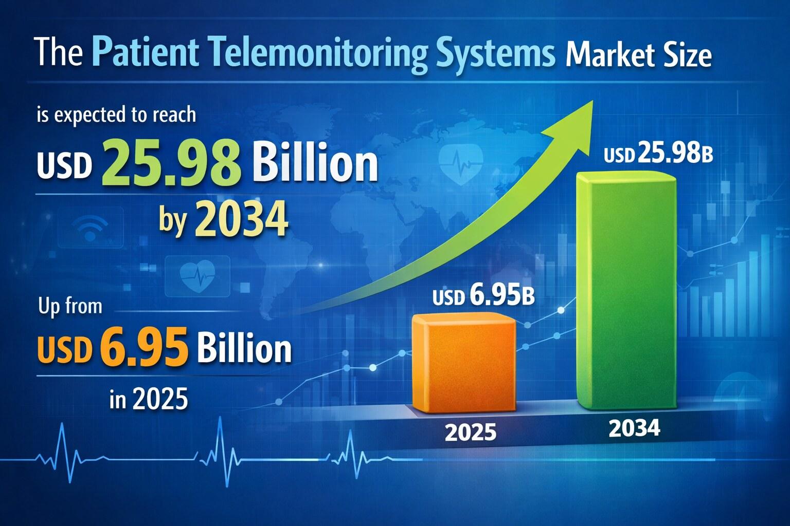 The Patient Telemonitoring Systems Market is poised for substantial expansion, with its value projected to increase from USD 6.95 billion in 2025 to USD 25.98 billion by 2034. The market is anticipated to register a strong CAGR of 15.78% during the forecast period from 2026 to 2034. This impressive growth trajectory reflects the rapid transformation of healthcare delivery models worldwide. Increasing demand for continuous monitoring, improved patient engagement, and reduced hospital readmissions are key factors shaping the market landscape.