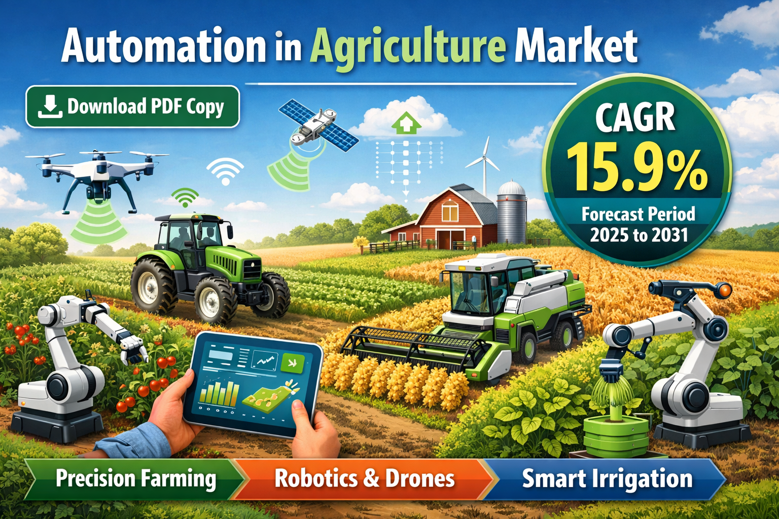 The Automation in Agriculture Market refers to the global industry focused on integrating advanced technologies such as robotics, AI, IoT, autonomous machinery, and smart irrigation systems into farming operations to improve productivity, efficiency, and sustainability.