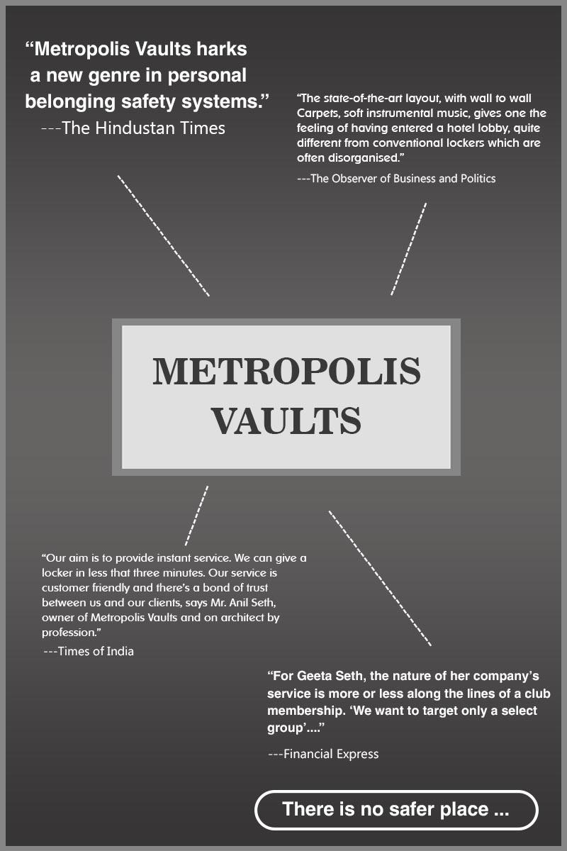 At Metropolis Vaults Pvt. Ltd, we are committed to delivering safe, reliable, and economical storage solutions. Secure your valuables with confidence and experience the assurance that comes from partnering with a professional private locker company dedicated to protecting what matters most.