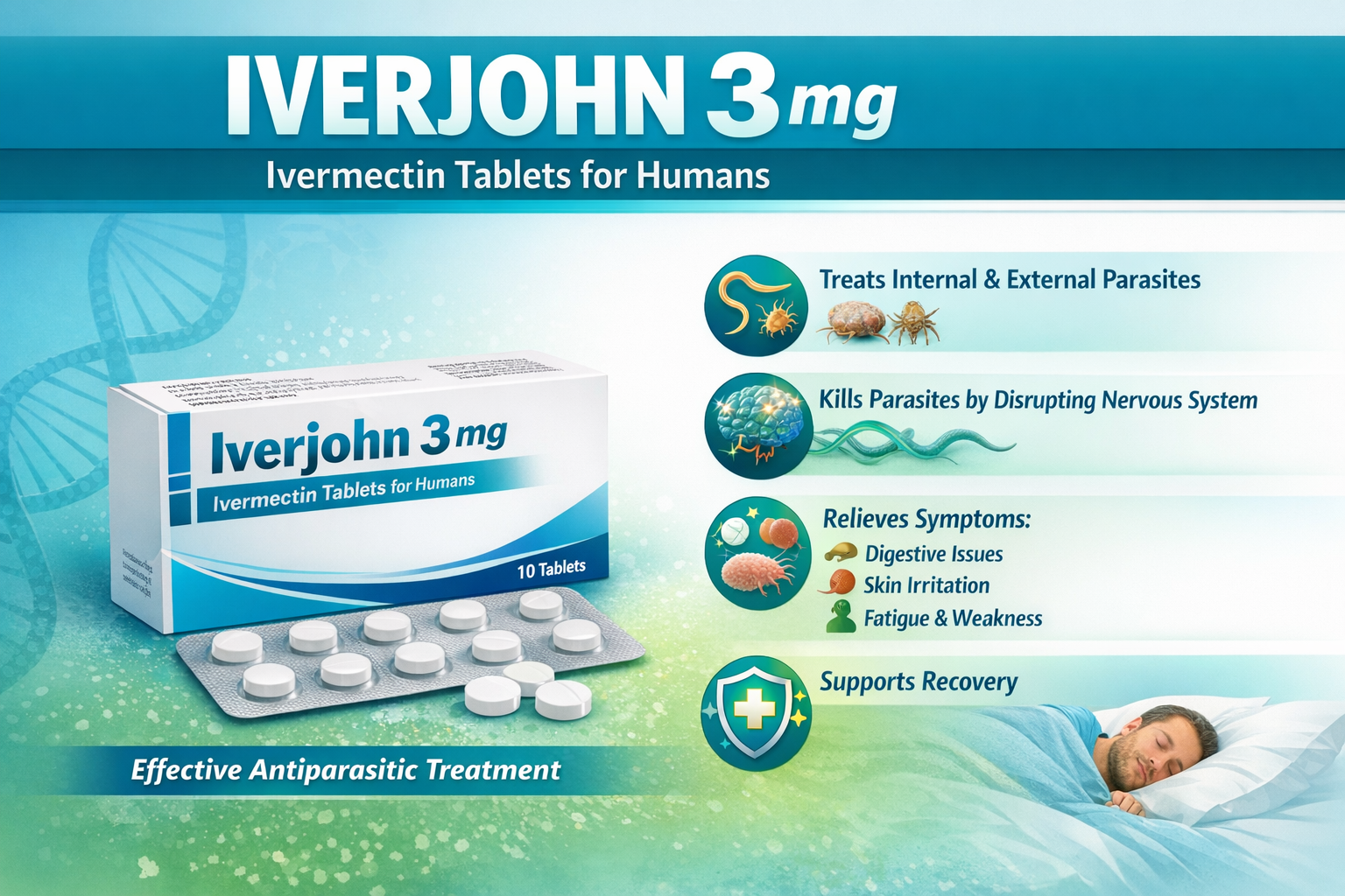 Iverjohn 3 mg ivermectin tablets provide a reliable treatment option for specific parasitic infections in humans. By targeting parasites directly and supporting natural elimination processes, the medication helps restore health and prevent complications. When used responsibly under medical supervision, it offers effective therapeutic benefits with a well-recognized safety profile.