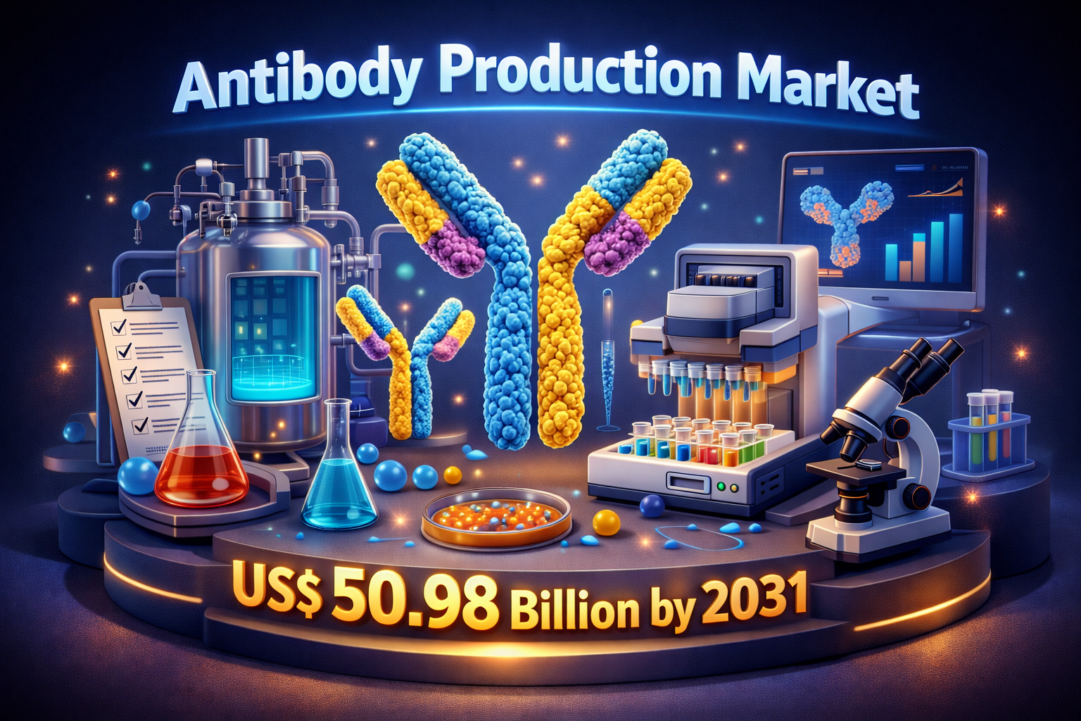 The future of the antibody production market appears highly promising as biotechnology innovation continues to accelerate. Increasing adoption of biologics, rising investments in pharmaceutical research, and the expansion of precision medicine will play a major role in shaping the market. Advances in production technologies and the growing development of biosimilar antibodies are expected to further improve accessibility and reduce treatment costs. As healthcare systems worldwide prioritize targeted therapies and advanced diagnostics, antibody production will remain a critical component of biomedical innovation and drug development.