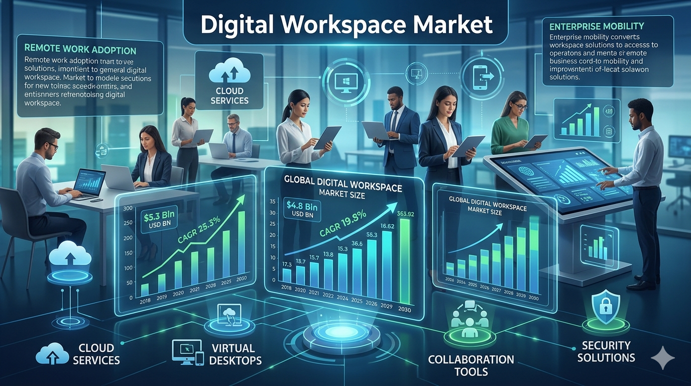 The Digital Workspace Market Size is expanding rapidly as businesses worldwide embrace digital transformation to enhance productivity and flexibility. The increasing shift toward hybrid and remote work models has accelerated the demand for advanced workplace solutions that integrate communication, collaboration, and data access into a unified platform. As organizations prioritize efficiency, tools such as cloud workspace solution and remote work platform are becoming essential components of modern business infrastructure.