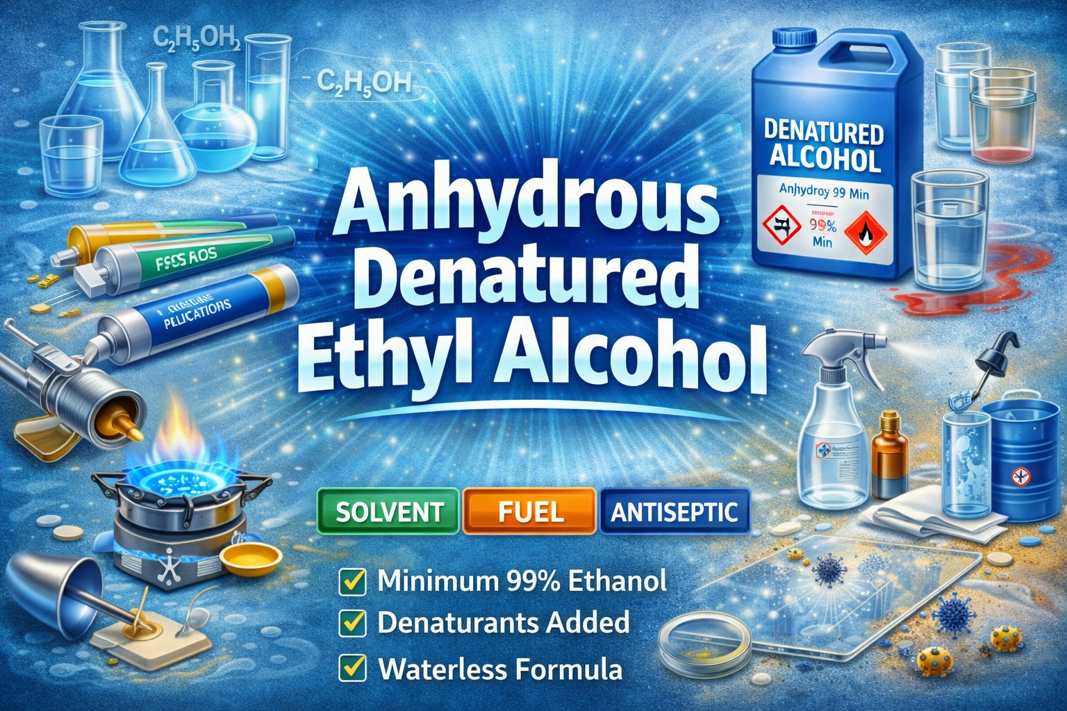 Anhydrous denatured ethyl alcohol is a highly purified form of ethanol that contains minimal water content and is rendered unsuitable for human consumption through denaturing agents. It is widely used across industries such as pharmaceuticals, personal care, chemicals, fuel blending, and industrial solvents. Its excellent solvency, volatility, and compatibility make it an essential component in various industrial and commercial applications.