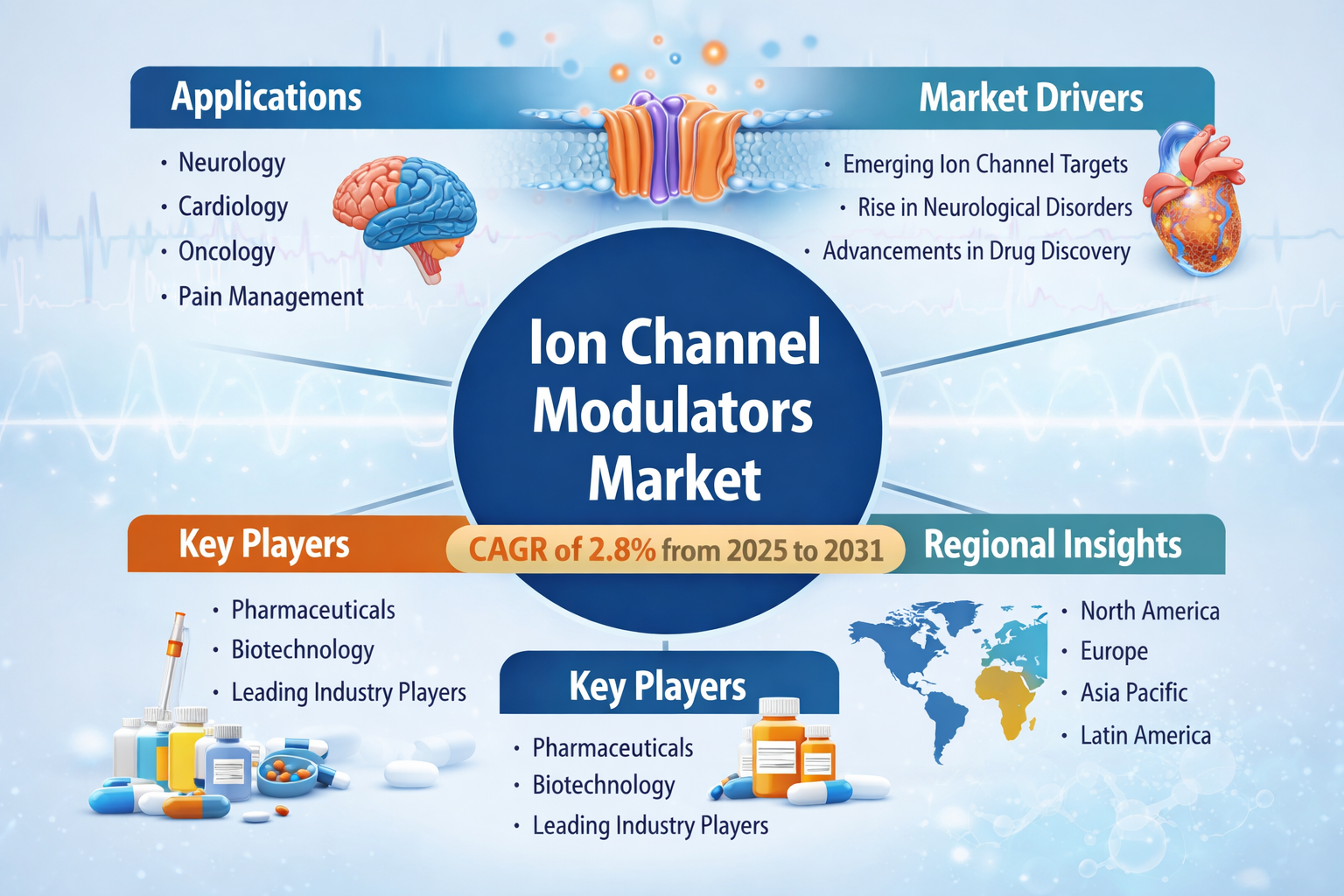 The Global Ion Channel Modulators Market is projected to witness steady growth through 2031, driven by increasing demand for targeted therapies in neurological, cardiovascular, and pain management applications. According to The Insight Partners, the market is expected to register a CAGR of 2.8% during 2025–2031, reflecting consistent expansion supported by ongoing advancements in drug development and delivery technologies.
