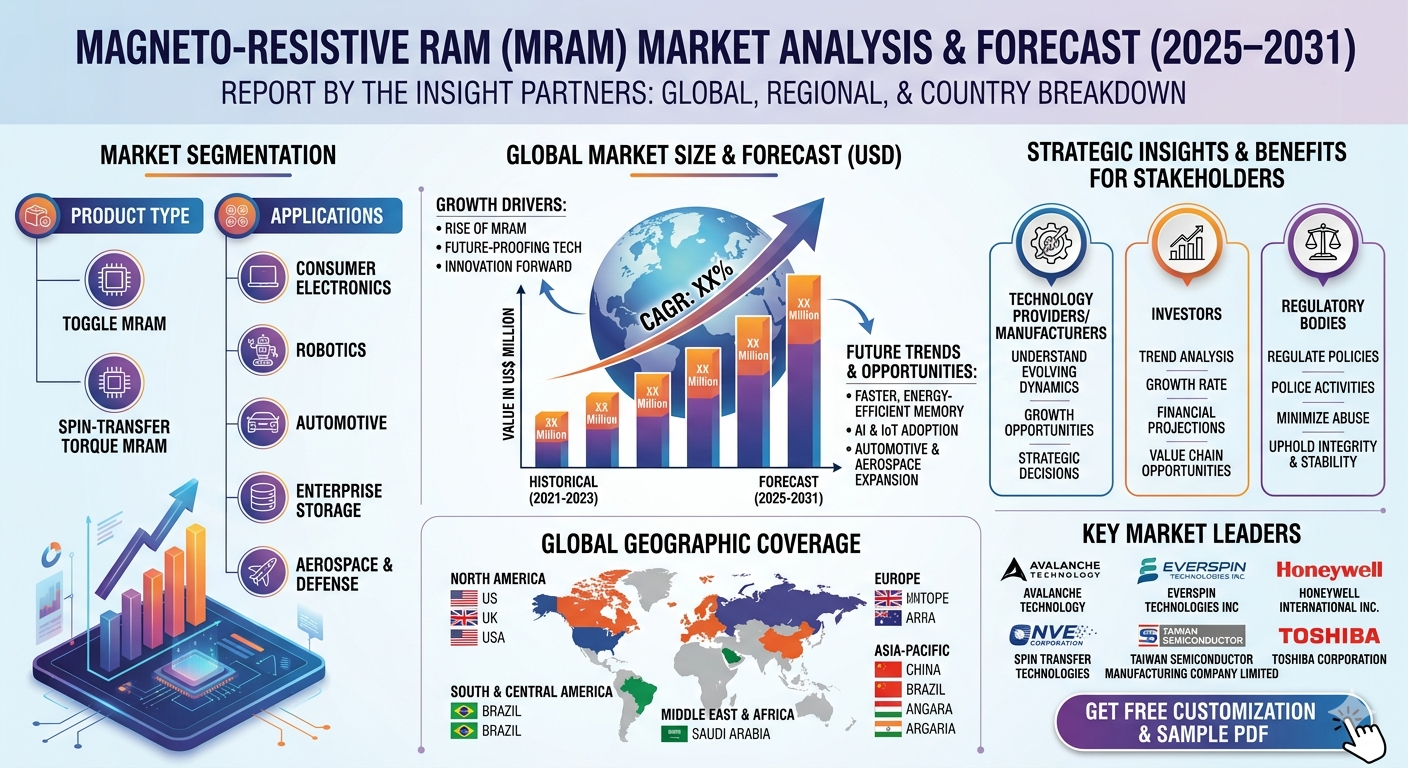 Increasing digitization across industries is creating strong demand for memory architectures that enable faster computing and efficient data retention. Semiconductor manufacturers are focusing on emerging solutions capable of improving device performance and energy efficiency. In the middle of this transformation, the Magneto Resistive RAM Market Outlook is gaining attention as a promising memory technology that combines non‑volatility, high endurance, and ultra‑fast read and write capabilities. MRAM stores information using magnetic states rather than electrical charges, allowing systems to retain data even when power is lost while maintaining extremely high speed and reliability. These characteristics make MRAM particularly valuable for enterprise storage, automotive electronics, consumer devices, and industrial applications where performance and data integrity are essential.
