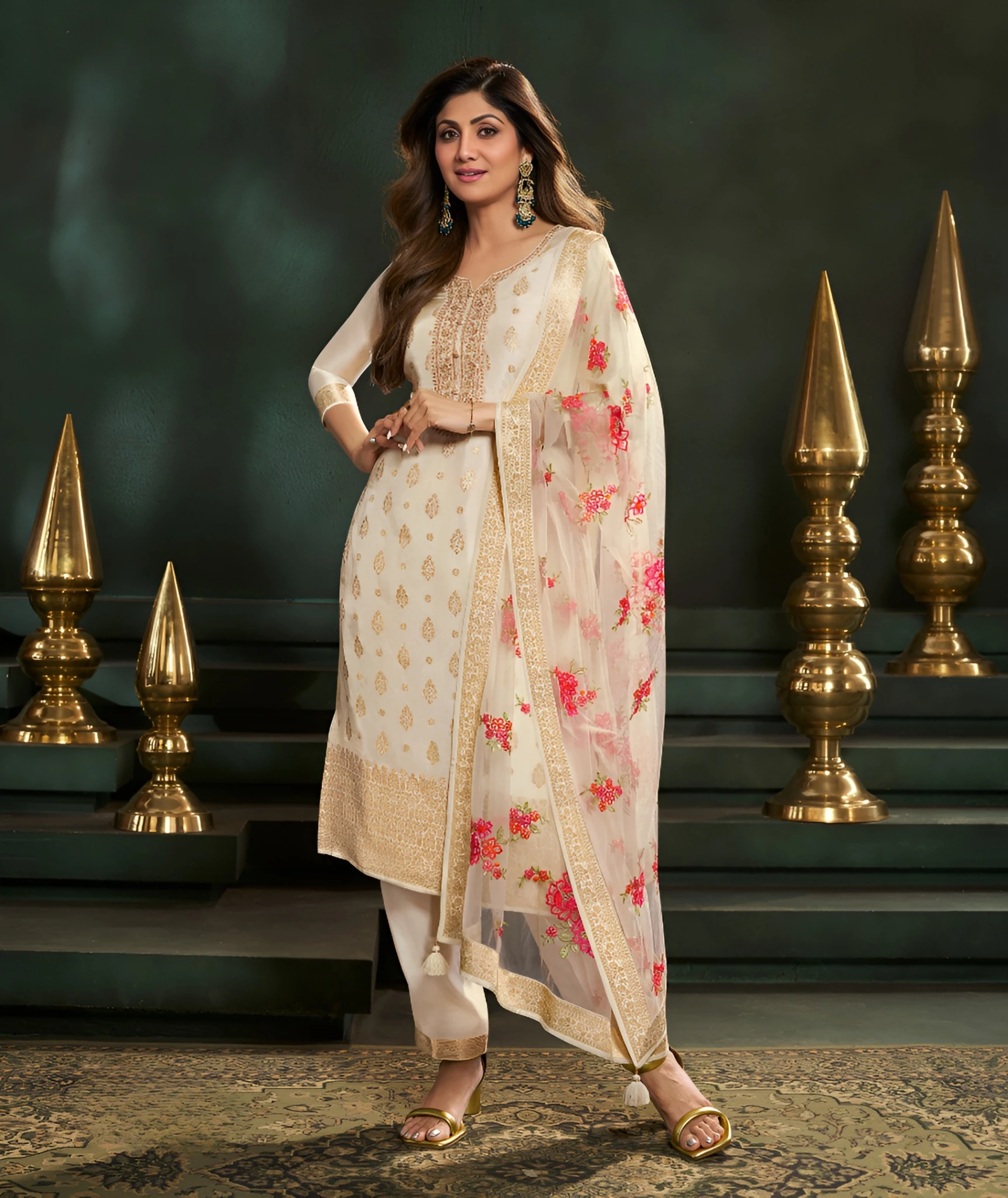 Pair with juttis for a traditional look or heels for a more polished appearance.