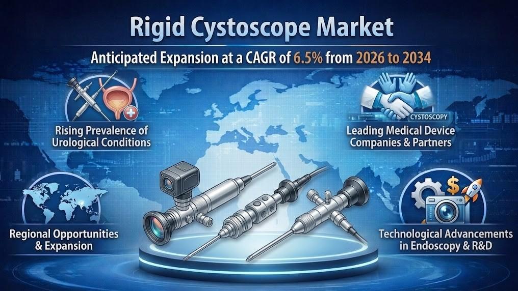 The Rigid Cystoscope Market Size is projected to expand steadily during the forecast period from 2026 to 2034, supported by the rising prevalence of urological disorders and the growing demand for accurate diagnostic tools. According to industry insights, the sector is expected to record a compound annual growth rate of around 6.5 percent during the forecast timeline. The rigid cystoscope market size is also influenced by technological advancements in medical devices, increased healthcare investments, and the rising adoption of advanced endoscopic systems in both developed and emerging economies.