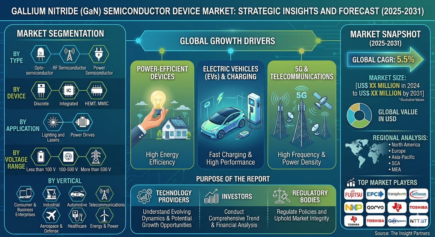 The semiconductor industry is rapidly evolving as modern electronic systems demand faster processing speeds, higher energy efficiency, and improved thermal stability. Gallium nitride (GaN) has emerged as a breakthrough semiconductor material capable of delivering superior performance compared to traditional silicon technologies. GaN devices operate efficiently at higher voltages, frequencies, and temperatures, enabling advanced electronic systems to achieve greater power density and reduced energy losses. These advantages have made GaN technology increasingly important in sectors such as telecommunications, automotive electronics, renewable energy, aerospace, and industrial automation. As global industries continue to develop next-generation electronic infrastructure, the demand for high-performance semiconductor materials is rising significantly.