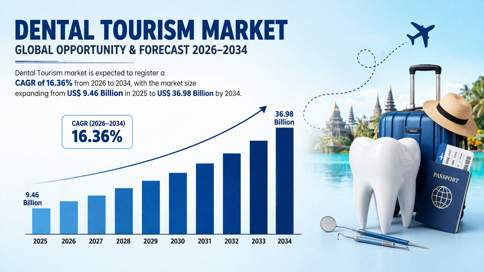 The global dental tourism industry is witnessing notable transformation as international patients increasingly seek cost effective and high quality dental procedures abroad. Countries with advanced healthcare infrastructure and competitive treatment pricing are becoming attractive destinations for individuals who want specialized dental care without the high expenses often associated with treatments in developed nations. Improved travel accessibility, rising healthcare awareness, and growing patient confidence in overseas clinics are contributing to steady industry expansion.