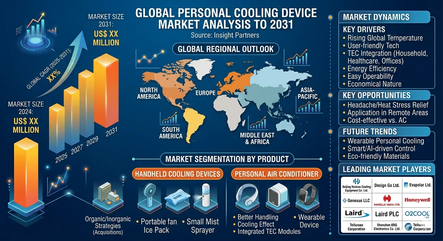 The global personal cooling device industry is expected to experience strong growth through 2031 as demand for portable and wearable cooling technologies continues to increase. Rising temperatures, expanding outdoor workforce activities, and growing participation in recreational and fitness programs will remain important factors supporting industry expansion.