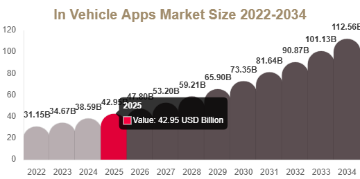 As per Redline Pulse, the in vehicle apps market includes a structured valuation for the base year 2025 along with forecast projections up to 2034 and a defined CAGR during the study period. The report provides: Market size estimation for 2025 (base year) Forecast value for 2034 CAGR growth rate across the analysis period This reflects the rapid expansion of connected mobility ecosystems and increasing integration of software-based automotive functionalities.