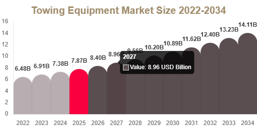 The towing equipment market is witnessing steady growth driven by increasing vehicle ownership, rising road accidents, expanding logistics fleets, and growing demand for roadside assistance services. Towing equipment includes tow bars, tow hooks, winches, tow trucks, and hydraulic lifting systems used for vehicle recovery, transportation, and breakdown assistance. According to Redline Pulse, the market is expected to expand significantly during the forecast period from 2025 to 2034, supported by rising demand for emergency roadside services, growth in commercial vehicle fleets, and increasing infrastructure development activities.