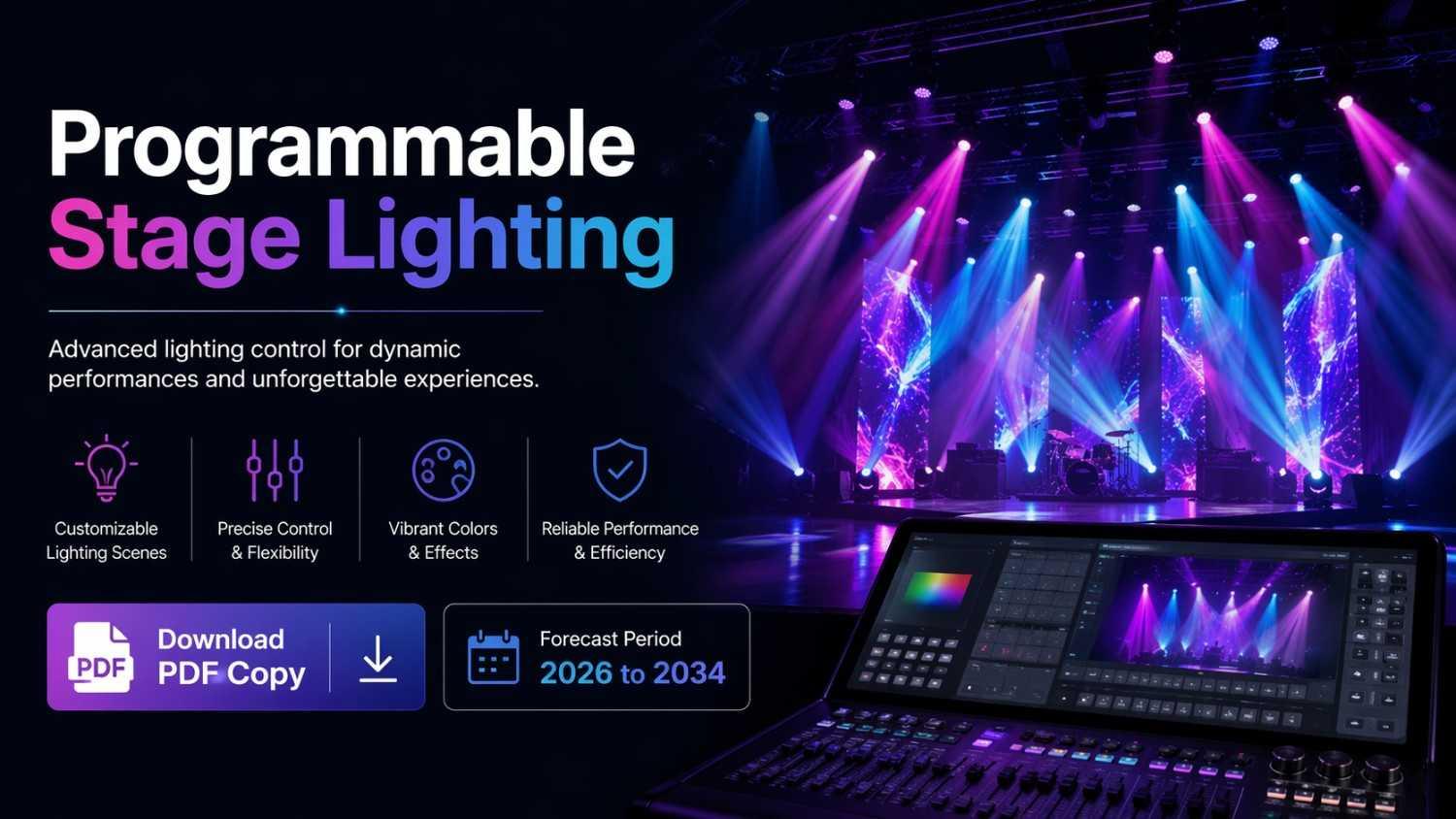 The programmable stage lighting market Trends is defined by its ability to provide dynamic, software controlled lighting solutions for concerts, theaters, corporate events, and architectural installations. By 2034, the market is expected to see a robust compound annual growth rate (CAGR), driven largely by the shift from traditional halogen and discharge lamps to intelligent LED fixtures.