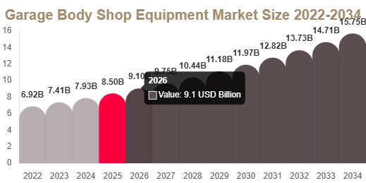 The Garage Body Shop Equipment Market is an essential part of the automotive aftermarket industry, supporting vehicle repair, maintenance, collision restoration, and repainting services. Increasing vehicle ownership, rising accident rates, and growing demand for professional repair services are significantly driving the adoption of advanced garage equipment globally.