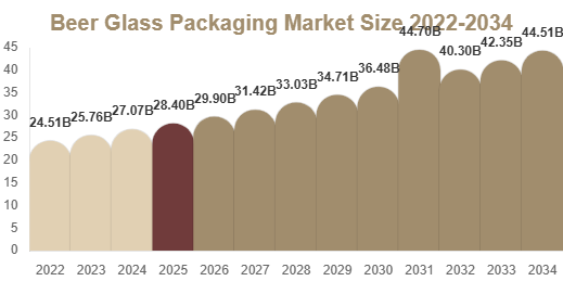 The beer glass packaging market size was valued at USD 24.7 billion in 2025.
