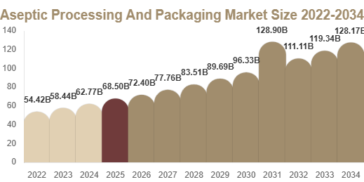 The aseptic processing and packaging market size was valued at USD 68.5 billion in 2025.