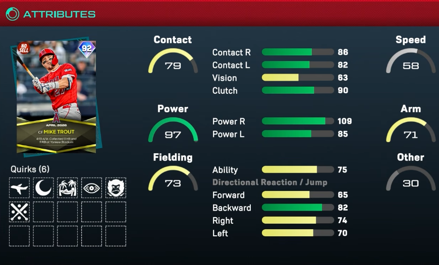 These quirks make him a versatile and dynamic card to use in-game, especially when playing against right-handed pitchers.