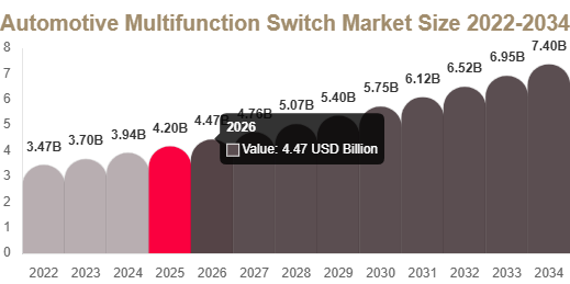 The Automotive Multifunction Switch Market is set for consistent growth through 2034, driven by increasing vehicle electrification, rising adoption of ADAS systems, and growing demand for integrated cockpit controls. Despite challenges related to complexity and cost, technological advancements in digital interfaces and modular switch architectures are expected to drive long-term market expansion.