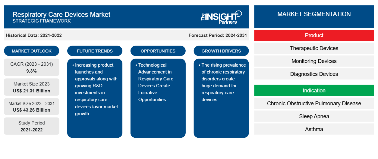The global respiratory care devices market is experiencing rapid expansion, driven by the increasing prevalence of respiratory disorders, technological advancements, and rising demand for home healthcare solutions. Respiratory care devices play a critical role in managing chronic respiratory diseases such as asthma, chronic obstructive pulmonary disease (COPD), and sleep apnea. The growing burden of air pollution, smoking-related illnesses, and aging populations is further accelerating the demand for advanced respiratory care solutions. The Respiratory care devices market size is projected to reach US$ 43.26 billion by 2031 from US$ 21.31 billion in 2023. The market is expected to register a CAGR of 9.3% during 2023–2031. Increasing healthcare investments and continuous innovation in medical devices are also supporting market growth.